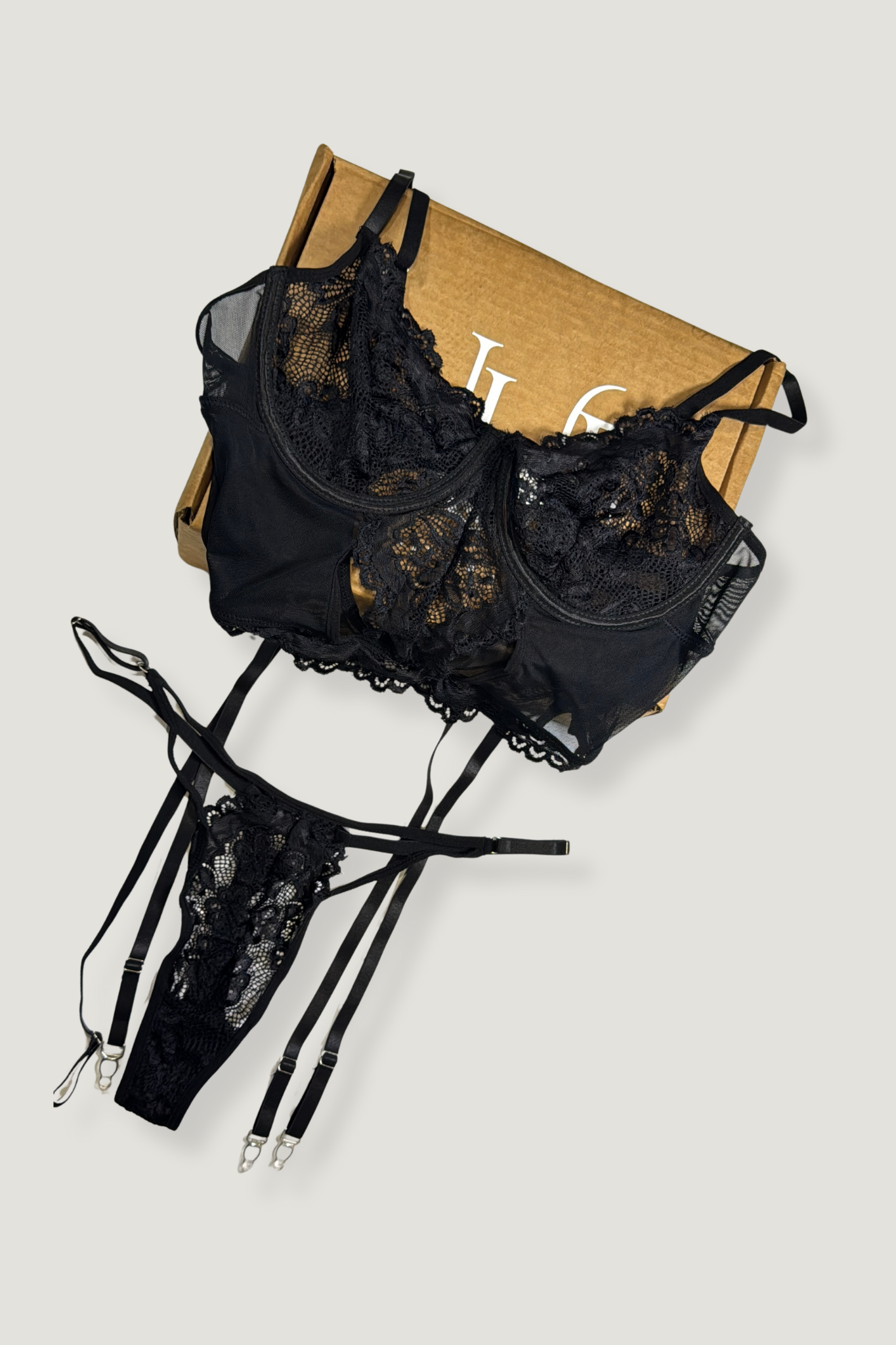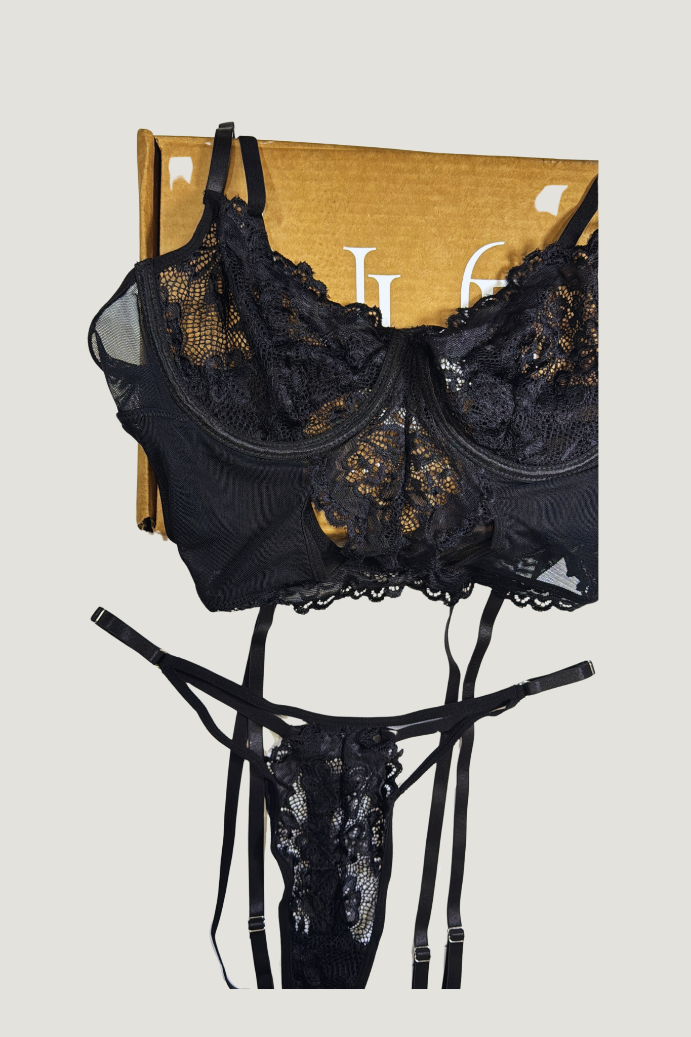 Luce tu lado más atrevido con el “Esencia Set”, un conjunto de tres piezas en negro con sujetador de encaje y detalles cuidadosamente diseñados para resaltar tus curvas. Perfecto para sentirte segura, elegante y sofisticada en cualquier ocasión.