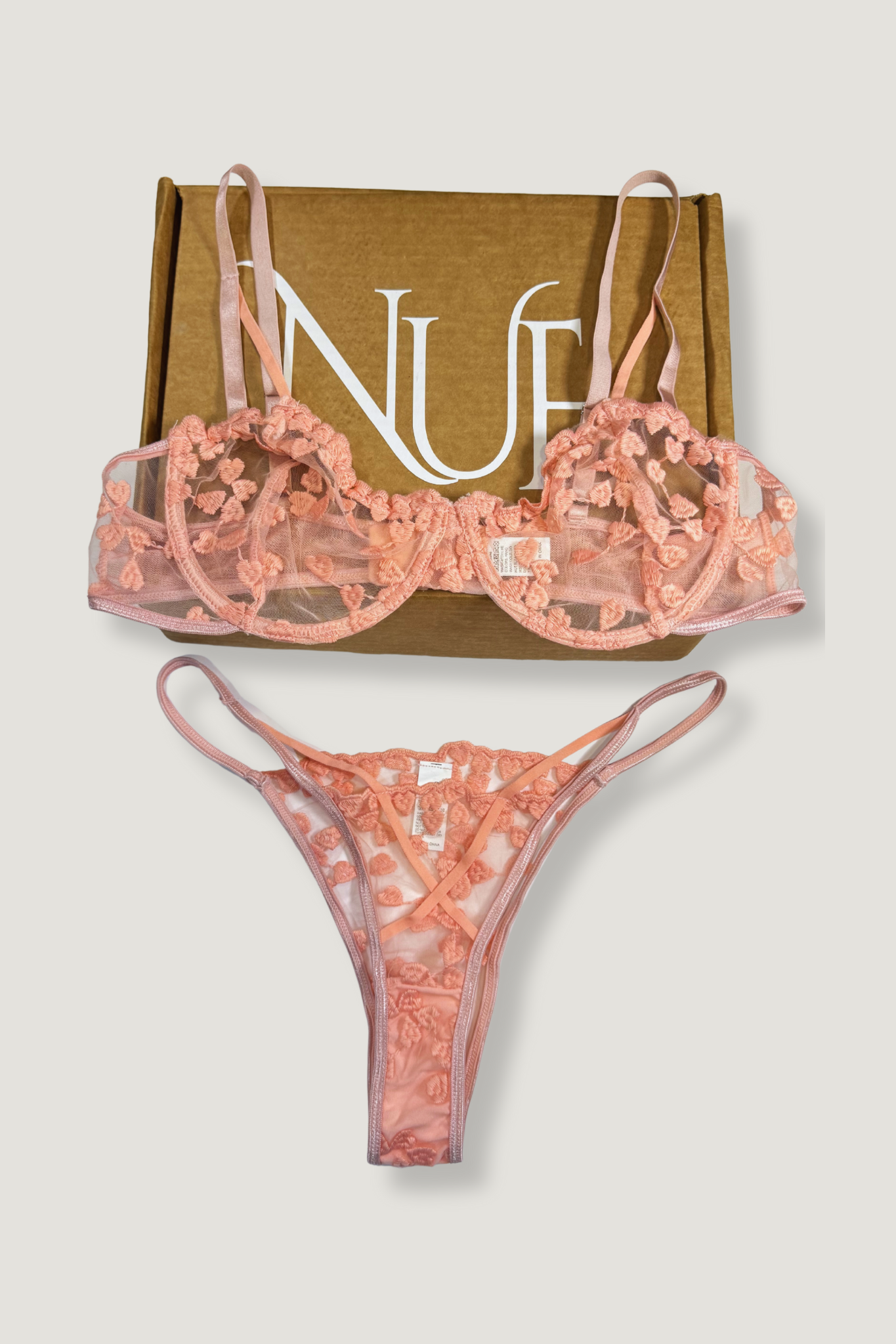 El “Pink Essence” es un conjunto de dos piezas en rosa pastel que destaca por su diseño minimalista y elegante. Perfecto para mujeres que buscan una sensualidad sutil con un toque chic y romántico.